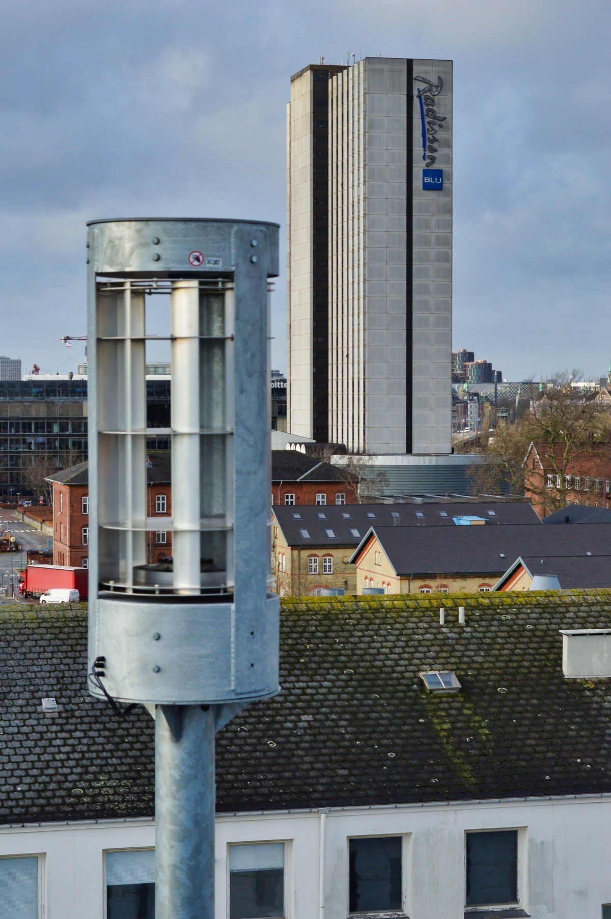 Vertikale vindturbiner kan monteres på møne på hus eller steder hvor det er godt vinddrag.